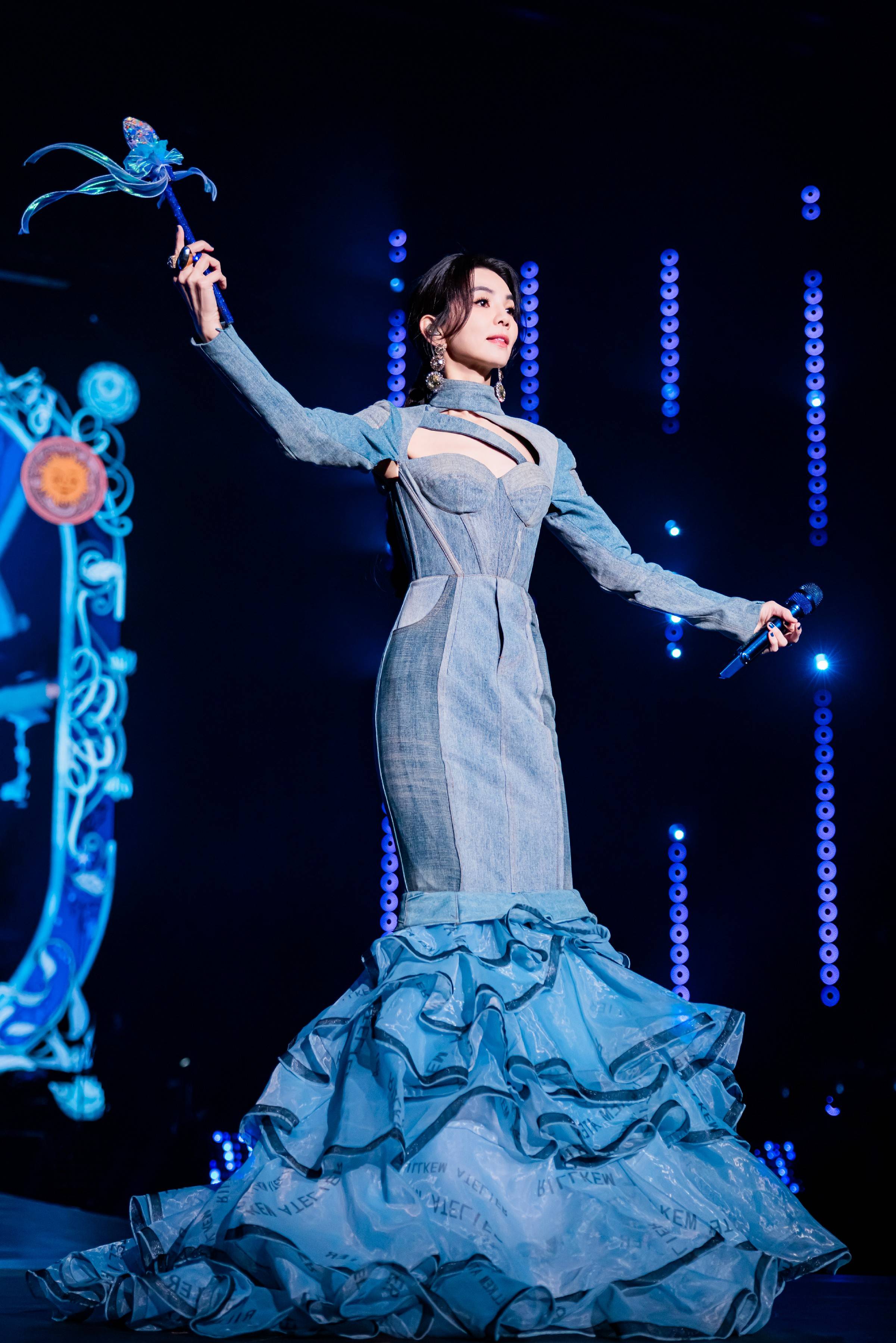 西安站在造型设计与曲目编排上带来诸多小惊喜。演出中,Ella身着全新定制牛仔蓝鱼尾拖尾裙亮相,复古华丽的风格完美适配抒情舞台氛围。安可环节,两晚演出继续解锁两套全新定制造型,首日为黑色挂脖露脐套装,次日为亮粉色紧身上衣,两套造型兼具性感与个性,带来高能蹦迪组曲,利落稳准的唱跳表演,将现场氛围推向顶点。